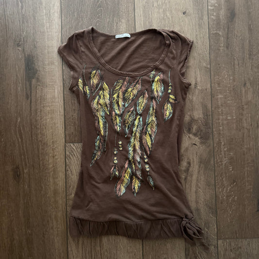 Brown & Yellow ‘Monteau’ Feathers Y2K Graphic Shirt
