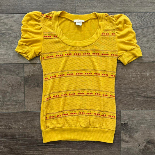 mustard yellow cherry y2k sweater puffy sleeve shirt