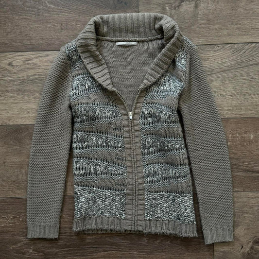 grey & sliver y2k knitted grungy zip up sweater jacket