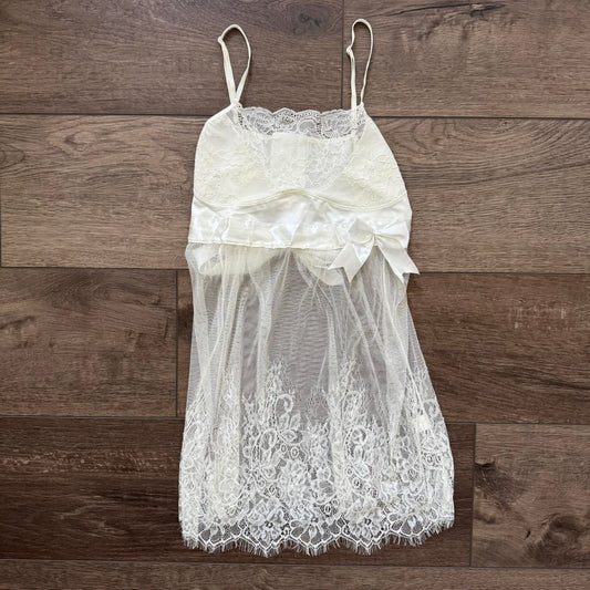 white creme lingerie bow tie back babydoll mini lingerie dress