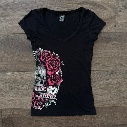 black metal mullisha skull rose graphic shirt