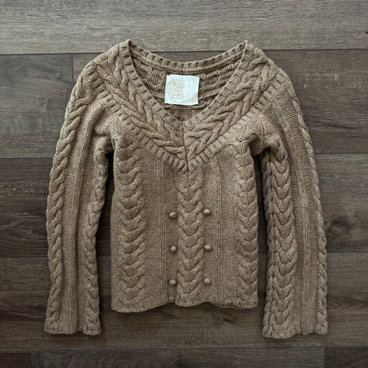 brown cable knit lambs wool long sleeve sweater