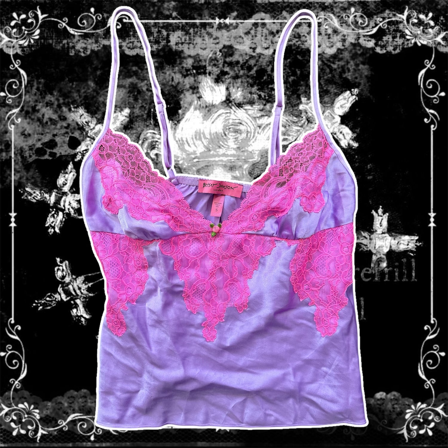 beautiful vibrant purple & pink lace trim lingerie top