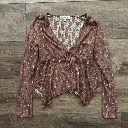 brown rose madden girl lace mesh asymmetrical fairy top