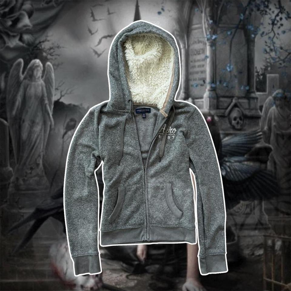gray fur lined aeropostale hoodie zip up jacket
