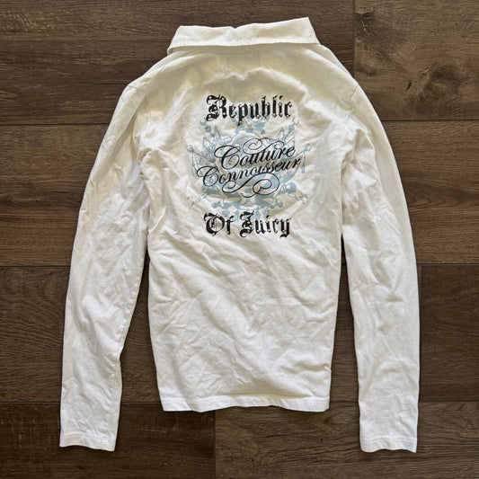 white y2k juicy couture connoisseur v neck long sleeve shirt