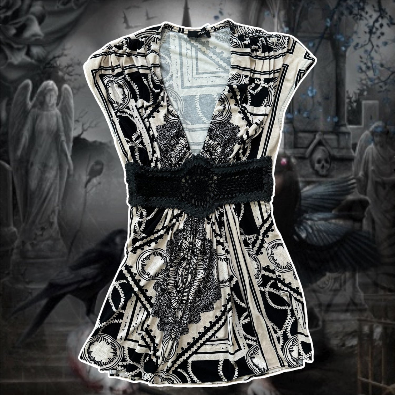 beige & black v neck boho blouse