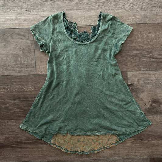 aqua green lace whimsical short sleeve top