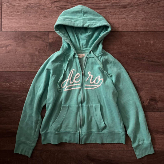 teal green y2k aeropostale zip up hoodie