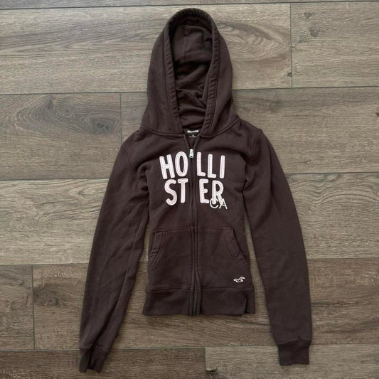 brown & pink hollister zip up jacket