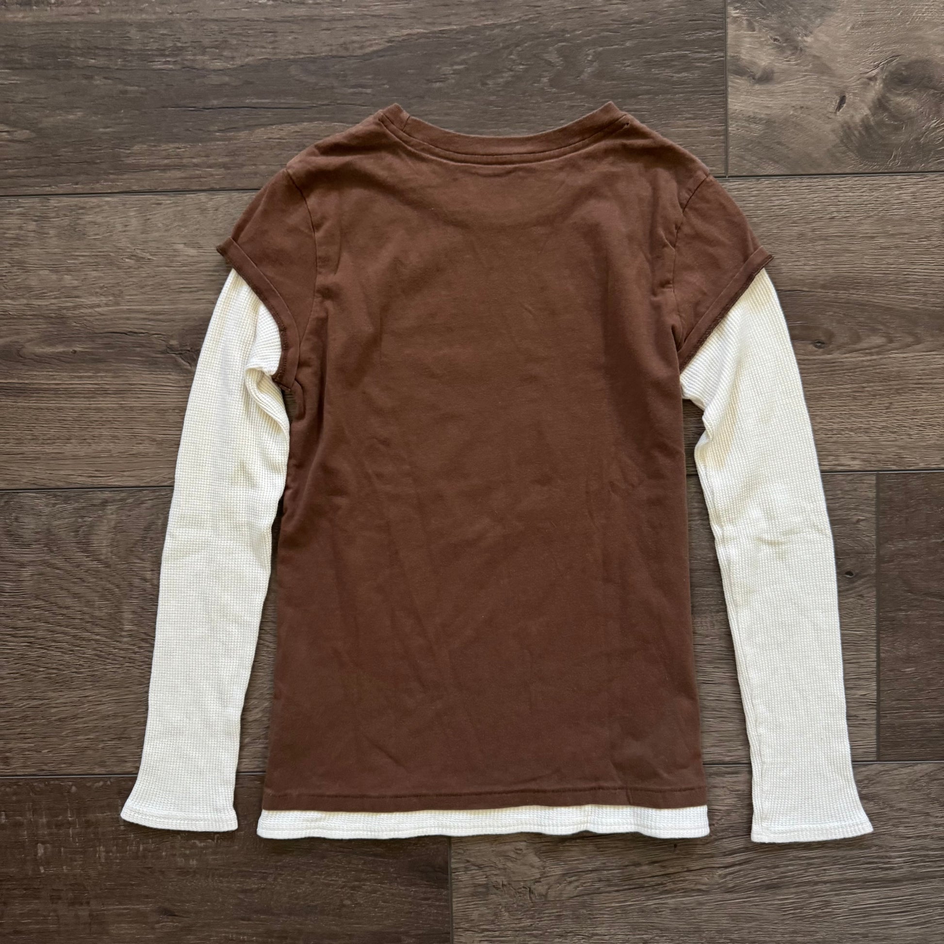 brown & white fairycore unicorn y2k layered long sleeve shirt