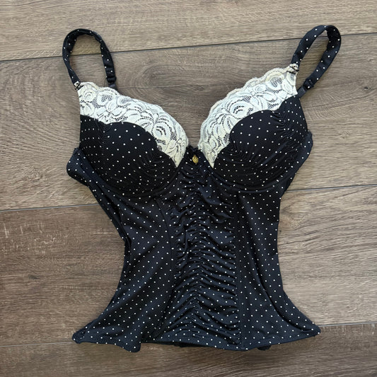navy blue & white polka dot lace trim corset top