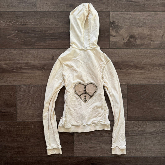 crème rhinestone heart peace sign y2k distressed hoodie