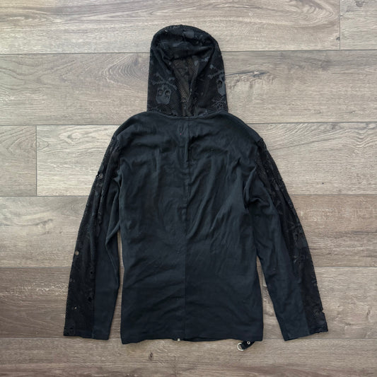 rare black tripp nyc mesh skull grungy zip up jacket hoodie
