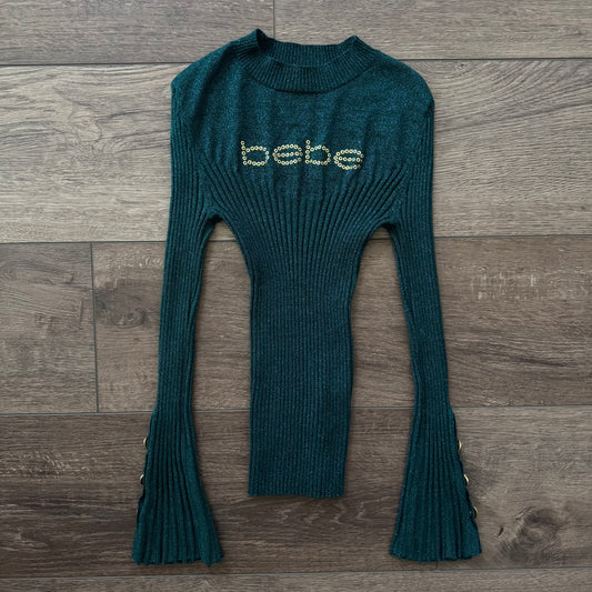 aqua dark green bebe bell sleeve blouse